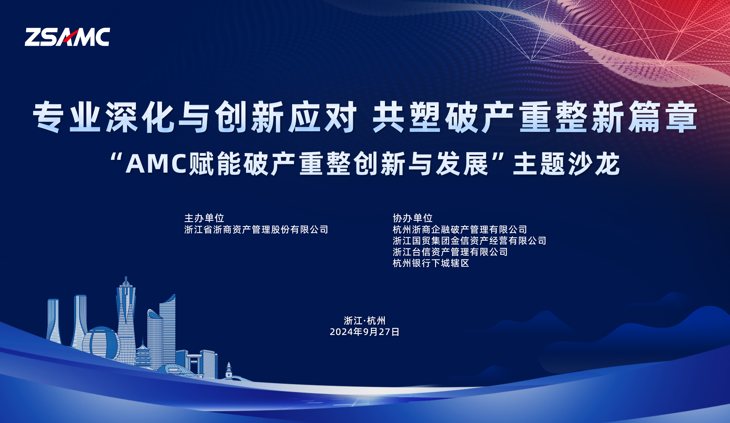 9月27日,由浙商資產(chǎn)聯(lián)合浙商企融、金信資產(chǎn)、臺(tái)信資產(chǎn)舉辦的“AMC賦能破產(chǎn)重整創(chuàng)新與發(fā)展”主題沙龍?jiān)诤贾蓓樌匍_。活動(dòng)邀請了浙江省高級(jí)人民法院、中級(jí)人民法院代表,破產(chǎn)學(xué)界專家以及破產(chǎn)管理人協(xié)會(huì)、律所的50余位專業(yè)人士參與,共同探討破產(chǎn)重整的新思路和新模式。